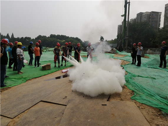 當(dāng)天上午九點(diǎn),社區(qū)和項(xiàng)目單位工作人員在現(xiàn)場(chǎng)懸掛橫幅,張貼宣傳海報(bào),并安置演練物品。接著,全體人員集合,由項(xiàng)目經(jīng)理作活動(dòng)動(dòng)員講話,介紹活動(dòng)流程和注意事項(xiàng)。然后,工作人員們?cè)诎踩珕T介紹完滅火器的使用步驟之后,分組操作滅火器滅火。最后,社區(qū)工作人員向項(xiàng)目單位職工發(fā)放宣傳單頁,倡導(dǎo)職工加強(qiáng)安全學(xué)習(xí),提高警惕,規(guī)范作業(yè),保護(hù)自己和工友的人身財(cái)產(chǎn)安全。