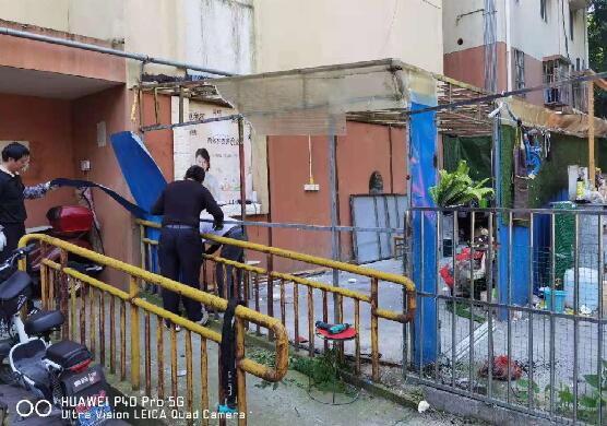 據(jù)悉,此處違建搭建于小區(qū)4棟2單元的陽臺外,結(jié)構為鋼架結(jié)構,由11樓住家戶搭建,主要是提供場地供居民打牌,貼補些家用。此違建除占用公共空間,影響小區(qū)環(huán)境,也影響著一樓居民的正常生活。社區(qū)也多次收到居民的12345投訴,要求取締違建。