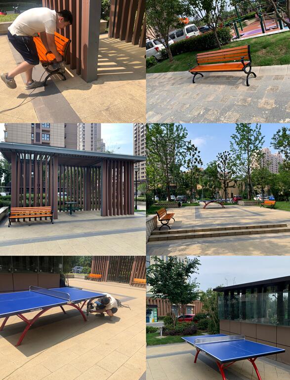 向上社區(qū)安裝乒乓球桌、休閑桌椅 居民休憩更愜意