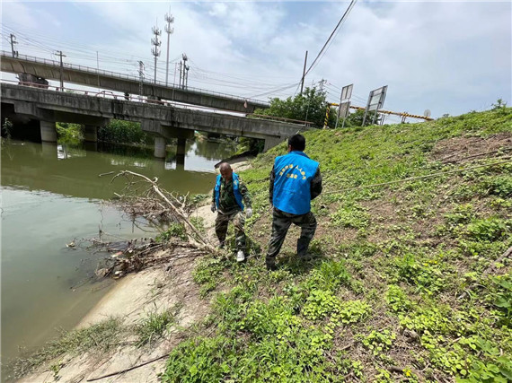在活動(dòng)中,退役軍人志愿者們發(fā)揚(yáng)不怕臟、不怕累的精神,有的身背打草機(jī)、有的手拿火鉗仔細(xì)清理河岸邊白色垃圾、枯草、爛草及生活雜物,并登上清漂船對(duì)河面漂浮物進(jìn)行打撈,經(jīng)過3個(gè)多小時(shí)的努力,東山河河堤垃圾及河面漂浮物全部打撈干凈。