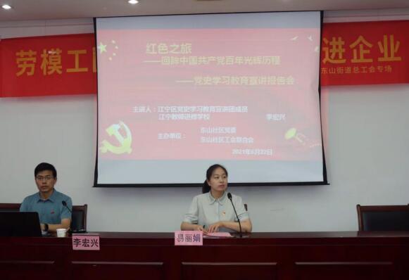 為慶祝中國共產(chǎn)黨建黨100周年,傳承紅色基因,錘煉黨性思想,6月22日,江寧區(qū)總工會“勞模工匠進校園 思政教師進企業(yè)”活動—東山街道總工會專場在東山社區(qū)舉行。