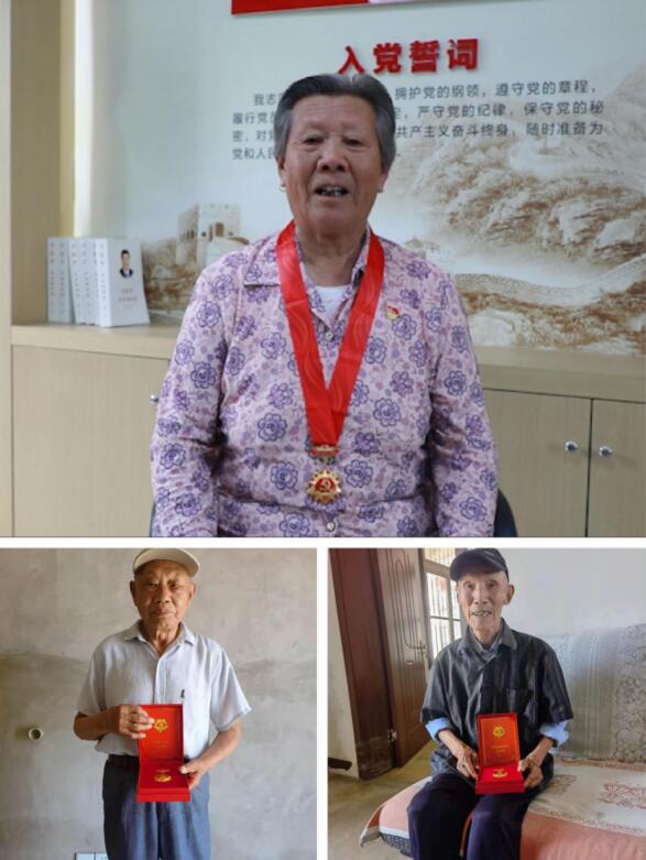 金黃的紀(jì)念章為榮譽(yù)加冕,戴上紀(jì)念章的老黨員們露出了自豪的笑容,在鏡頭前肅穆而立,一如從前。
