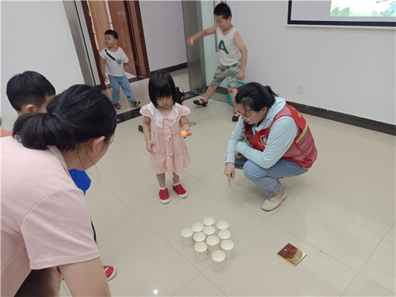 本次活動(dòng)設(shè)置了拍皮球比賽、紙杯乒乓球、拋接沙袋等簡(jiǎn)單又有趣的游戲項(xiàng)目。每一游戲環(huán)節(jié),社區(qū)志愿者都仔細(xì)講解了游戲規(guī)則,指導(dǎo)孩子們有序參與進(jìn)來,孩子們邊玩游戲邊贏獎(jiǎng)品,玩得不亦樂乎。家長(zhǎng)們?cè)谝慌钥粗?,也樂在其中?/p>