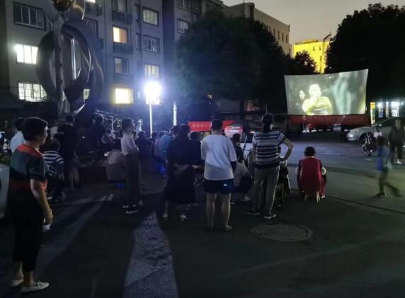 晚飯后,社區(qū)的許多老人、孩子、年輕的父母協(xié)朋伴友來觀看電影。獨特的露天觀影,涼爽的夏季晚風(fēng),泛舊的電影屏幕都讓居民們新奇不已,大家看的津津有味,隨著劇情的發(fā)展時而大聲喝彩,時而感動落淚,時而會心一笑,完全融入了電影的情節(jié)里。除了播放電影外,社區(qū)還加入了紅色故事宣傳片,用動人的黨史故事向人們傳遞不忘初心、砥礪前行的黨性情懷。