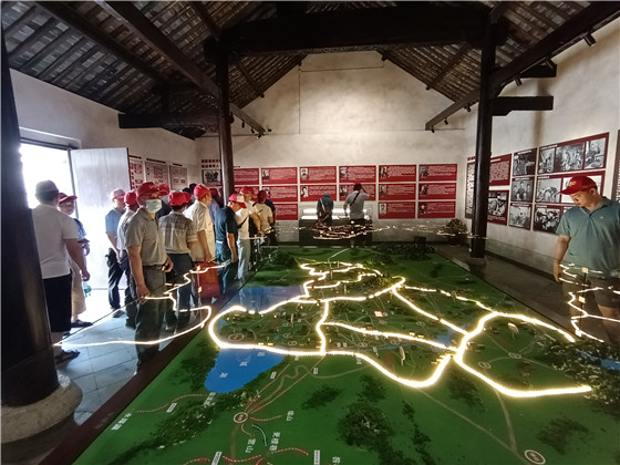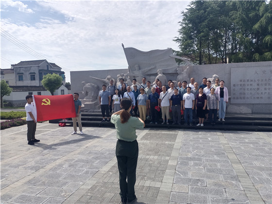 活動中,在首站初心廣場,面對鮮紅的黨旗,大家一起高舉右手,在社區(qū)黨總支副書記陳凱峰同志的領(lǐng)誓下,再次莊嚴宣誓,重溫了入黨誓詞,接著一起唱響紅歌《沒有共產(chǎn)黨就沒有新中國》,以歌頌史。隨后,大家一起參觀了溧高縣抗日民主政府貨管局、紡織廠、兵工廠、弘毅館等西舍革命紅色場館,跟隨講解員的解說一起回顧了革命歷史,感悟了革命情懷。最后,在西舍革命烈士紀念碑前,大家整齊肅立,鞠躬默哀,向革命烈士敬獻鮮花,以此表達了對革命烈士的無限崇敬和緬懷之情。