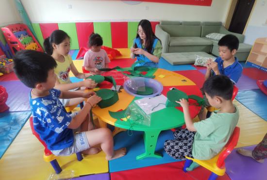 “我貼的是天安門廣場上的正陽門城樓,我以前去過一次,很莊嚴肅穆。”在小朋友們的細心粘貼下,和平鴿、五星紅旗等躍然紙上,訴說著中國的故事。