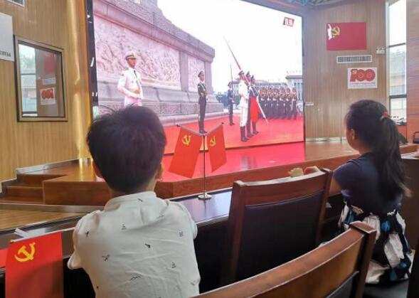 現(xiàn)場,關(guān)工委工作人員組織孩子們走進(jìn)龍尚村黨群服務(wù)中心,觀看了慶祝大會(huì)。孩子們手中拿著黨旗,認(rèn)真觀看著屏幕上的直播典禮,聆聽著習(xí)近平總書記的重要講話。