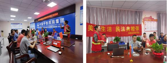 7月9日,南京市棲霞區(qū)燕子磯街道燕子磯社區(qū)司法服務(wù)中心走進(jìn)轄區(qū)在建工地中鐵四局項(xiàng)目部舉行“普法宣傳進(jìn)工地,法律意識(shí)入人心”主題宣傳活動(dòng),項(xiàng)目負(fù)責(zé)人、民工代表、工地網(wǎng)格員共同參加活動(dòng)。