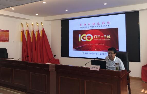 隨后,區(qū)委宣講團俞有利教授為大家開展了黨史學(xué)習(xí)專題黨課。俞教授以《苦難中鑄造輝煌》為主題,從“百年苦難”和“百年輝煌”兩個方面帶黨員深入了解了中國共產(chǎn)黨成立100年來,中國人民艱苦奮斗、奮發(fā)進取所取得的輝煌成就。俞教授的黨課,內(nèi)容豐富、理論性強、講解生動、貼近實際,使黨員們在賡續(xù)紅色精神血脈中涵養(yǎng)了高尚的黨性情懷。