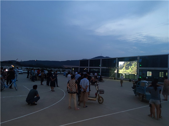 夜幕降臨,勞碌了一天的建筑工人們正清洗著泥土與汗水,看到放映工作人員的到來,工友們?nèi)宄扇?,聚集在廣場上等待著電影的播放。隨著電影開始放映,熱鬧的現(xiàn)場很快就安靜下來。大家紛紛坐好,進入“觀影模式”,聚精會神地觀看紅色電影《金剛川》,讓堅守在建設(shè)一線的工友們共同參與到黨史學(xué)習(xí)教育活動當(dāng)中,共同重溫黨的光輝歷程,接受紅色文化洗禮?,F(xiàn)場不少工友還拿出手機將放映場景拍照發(fā)給親朋好友、發(fā)布朋友圈,分享觀影的感想。