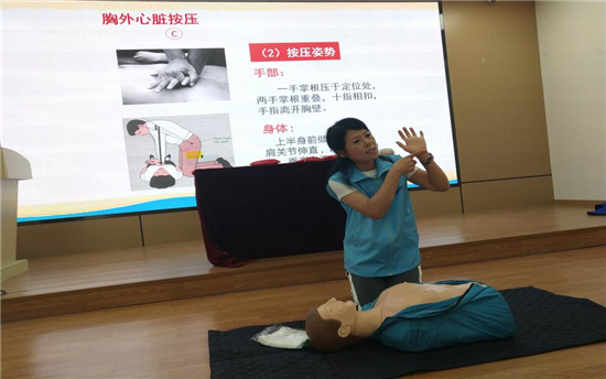 心肺復蘇術CPR環(huán)節(jié),劉老師通過“一看二喚三呼”、“左手在下、右手在上、十指相扣、指尖翹起”、“30+2”(30次胸外按壓+2次人工呼吸)、“仰頭抬頜”等關鍵詞教學,以及現(xiàn)場實際操作演練,形象生動地指導大家如何進行心肺復蘇急救,進一步增強了大家自救互救的“救命”本領。社區(qū)青年黨員王文文連連稱贊:“這次活動讓我們受益匪淺,孩子們在玩中學,增長了不少自救知識,為社區(qū)點贊!”