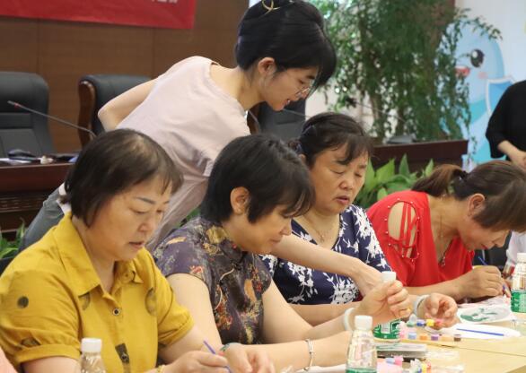 隨后,社區(qū)志愿者為大家介紹了團扇的文化背景及制作方法,從構(gòu)圖到制作,大家都有條不紊的進行,時不時互相交流,氣氛十分的活躍。經(jīng)過半小時的努力,花朵、蝴蝶、綠葉在團扇上展現(xiàn)出它們獨特的風采,原本空空如也的團扇瞬間花團錦簇,漂亮極了。一幅幅充滿創(chuàng)意的團扇作品躍然扇上,素雅的團扇在大家手中重新煥發(fā)生機,被賦予與眾不同的意義。活動結(jié)束后,大家拿著自己制作的成品,紛紛合影留念。