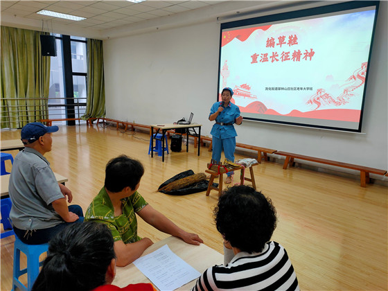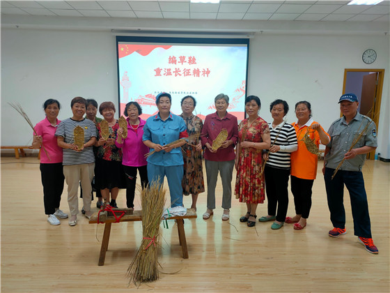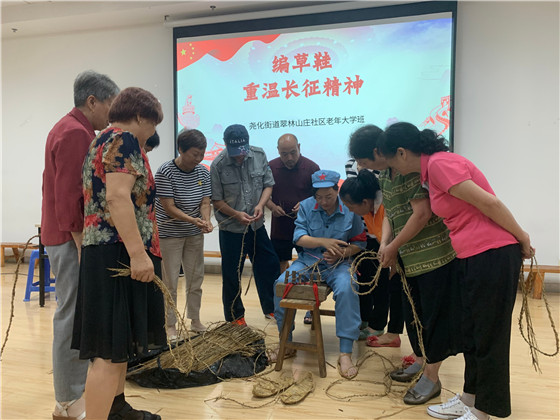 南京市棲霞區(qū)堯化街道翠林山莊社區(qū)邀請(qǐng)了非遺文化傳承人樊老師現(xiàn)場為老年大學(xué)班的學(xué)員們講述“草編”技巧,通過組織學(xué)員們學(xué)習(xí)長征故事,帶領(lǐng)他們回憶長征路,分享紅軍路上的經(jīng)典故事——湘江戰(zhàn)役,讓老人們走近長征,走近紅軍,深入了解紅軍長征的艱苦卓絕,深入了解堅(jiān)持不懈、永不言敗的長征精神。“‘腳穿草鞋跟黨走,刀山火海不回頭’,紅軍草鞋是當(dāng)年數(shù)萬紅軍戰(zhàn)士艱苦跋涉、浴血奮戰(zhàn)的一個(gè)歷史見證和象征,在老紅軍的眼中,沒有草鞋,就走不完長征路……”紅軍草鞋是當(dāng)年數(shù)萬紅軍戰(zhàn)士艱苦跋涉、浴血奮戰(zhàn)的一個(gè)歷史見證和象征。