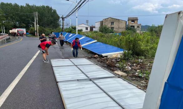 近日,南京市棲霞區(qū)棲霞街道東陽社區(qū)接到居民王阿姨電話稱崗龍路沿線由于大風(fēng)、大雨天氣,有3處圍擋出現(xiàn)倒伏,部分圍擋破損,嚴(yán)重影響過往行人出行安全,希望引起大家的重視。