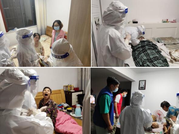 社區(qū)黨總支為了照顧長期臥床,行動不便的居民,專門安排工作人員、醫(yī)護(hù)人員、志愿者提供上門采樣服務(wù),充分體現(xiàn)出社區(qū)將黨史學(xué)習(xí)教育成果轉(zhuǎn)化到實際行動上。“都這么晚了你們還不辭辛苦的上門為我們這些行動不便的人檢測,真是太感謝黨和政府了,非常感動,你們辛苦啦!為你們點贊!”社區(qū)內(nèi)行動不便居民的家屬感激地說道。