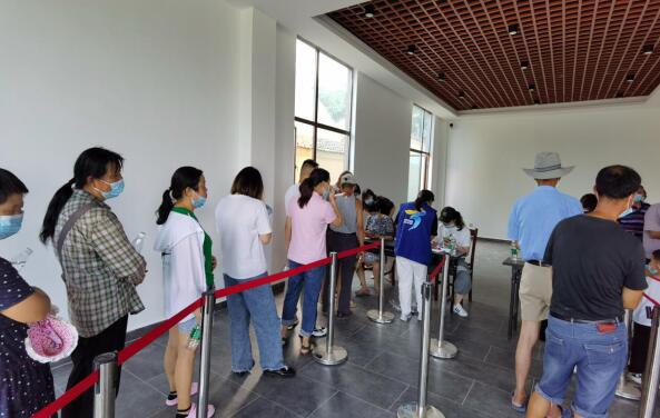 “大家都不要著急,今天我們不休息,排到100后的村民朋友可以先去吃午飯,下午再過來,今天哪怕是到凌晨我們也會一次性檢測完,大家不要著急。”鶴齡社區(qū)網(wǎng)格員拿著手持擴音器,不斷向尚不了解情況的村民介紹流程和安排。烈日炎炎,有的工作人員在烈日下做好居民排隊檢測的秩序維穩(wěn)工作;有的網(wǎng)格員為排隊等候村民發(fā)放礦泉水、加裝空調(diào)電風(fēng)扇,為醫(yī)護人員和村民群眾做好防暑降溫工作;有的黨員干部在大廳里面負責(zé)登記人員信息,10個人一組,收集身份證,做好二維碼登記,再負責(zé)帶領(lǐng)這組人員到醫(yī)生處采集核酸,讓全員核酸采集工作有條不紊地進行。