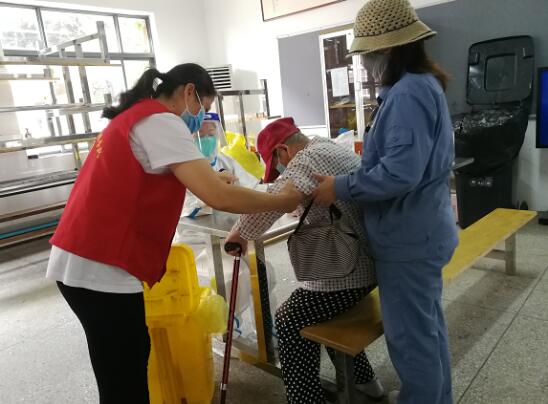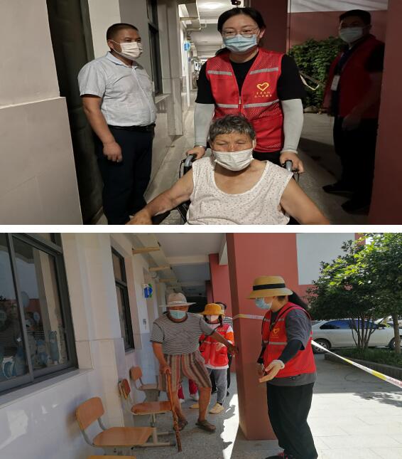 張奶奶年紀較大,身體殘疾,坐輪椅行動不便,新時代文明實踐站專門安排志愿者接張奶奶到檢測點進行檢測,期間志愿者細心服務,陪同觀察,幫助她登記信息,檢測完畢之后,護送張奶奶回家。此外,另一位老年殘疾人李大爺,勉強能夠行走,志愿者一路貼心扶著李大爺,細心幫助他填寫信息,認真核對每一個選項,確認無誤后,這才陪同李大爺進行檢測,過程中,志愿者如同子女一般輕聲安慰老人不要緊張。