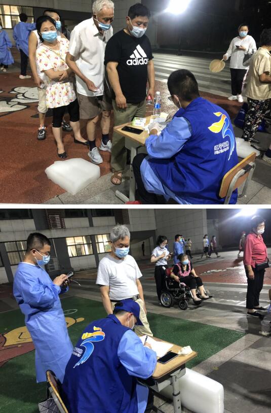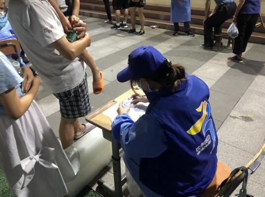 網(wǎng)格員們分工協(xié)助,配合默契,為了盡快額完成采樣工作,每一個司家社區(qū)網(wǎng)格員都沒有顧上吃午飯,悶熱的天氣,網(wǎng)格員穿著厚重的防護(hù)服,汗水早已浸透衣服,但他們依舊認(rèn)真的對待居民、細(xì)致、耐心的進(jìn)行登記和引導(dǎo)工作。一直持續(xù)到深夜1點采樣和現(xiàn)場清潔才結(jié)束。