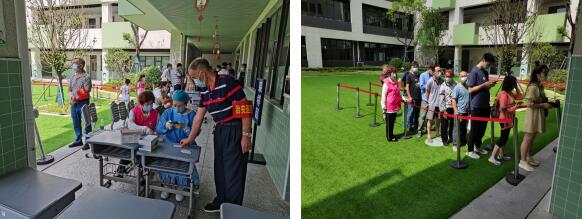 自7月21日起,南京市啟動全員核酸檢測。棲霞街道華僑城小學檢測點隨處可見穿著“紅馬甲”服裝的志愿者忙碌的身影,他們是江南廠社區(qū)巾幗志愿者服務隊。