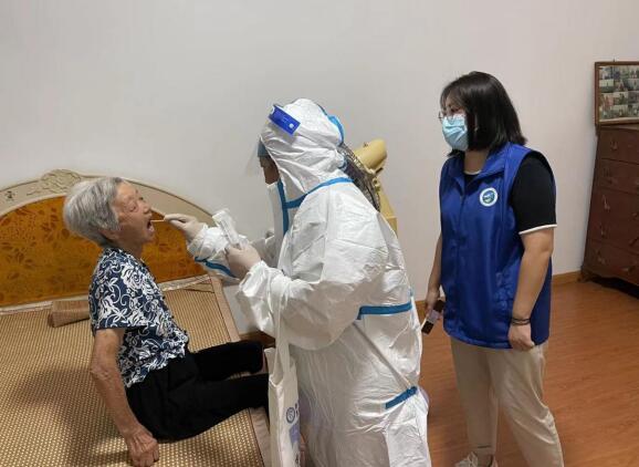 近日,南京市江寧區(qū)湖熟街道耀華社區(qū)網(wǎng)格員上門對(duì)社區(qū)年老、失能老人進(jìn)行核酸檢測(cè)的采樣工作,確保核酸檢測(cè)全覆蓋。