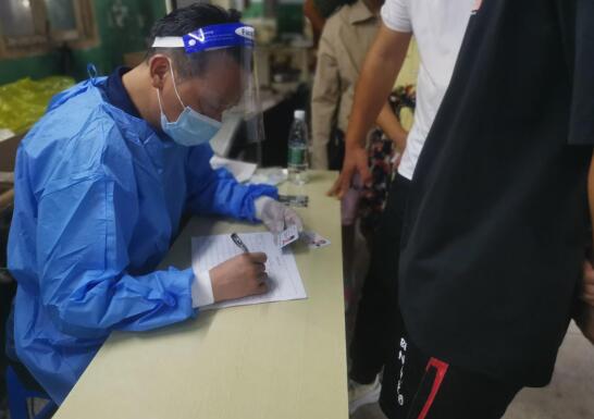 “我想成為疫情志愿者,想要幫助社區(qū)盡快完成核酸檢測(cè)”,司家社區(qū)居民、社區(qū)法律顧問(wèn)王遠(yuǎn)虎,在了解到第二次檢測(cè)的嚴(yán)峻情況后,就立刻到社區(qū)報(bào)名社區(qū)志愿者,加入檢測(cè)行列。從第一天晚上8點(diǎn)到第二天凌晨4點(diǎn),穿著防護(hù)服的王運(yùn)虎一刻未離開(kāi)自己的崗位,他知道疫情無(wú)情,分秒必爭(zhēng)。直到最后一名居民完成檢測(cè),才脫下衣服吃一口已經(jīng)冷掉的盒飯。