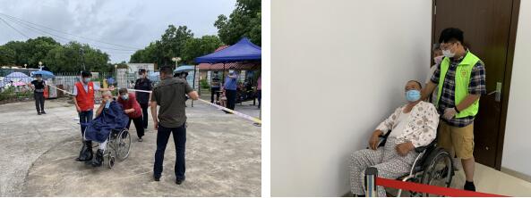 “你們不需要排隊(duì)等待,社區(qū)為大家開(kāi)辟了綠色通道,我推著您去那邊做核酸,沒(méi)事的......”檢測(cè)現(xiàn)場(chǎng)一大早就排起了長(zhǎng)隊(duì),社區(qū)弱勢(shì)群體,因?yàn)樾袆?dòng)不便,志愿者立馬上前為他們指引方向,進(jìn)入綠色通道,志愿者或是攙扶、或是推著輪椅,一路上,志愿者全程悉心陪伴,輕聲安慰他們的緊張情緒,囑咐他們不要緊張。