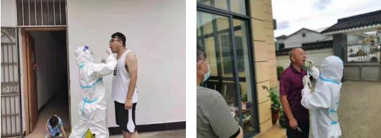 近日,南京市江寧區(qū)橫溪街道紅旗村工作人員帶領(lǐng)醫(yī)務(wù)人員進(jìn)村入戶為行動不便的老人和居家隔離人員進(jìn)行核酸檢測,讓他們足不出戶就順利完成檢測,為轄區(qū)村民織牢“防疫保護(hù)網(wǎng)”。