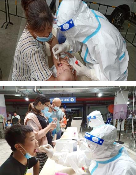 “寶寶,來,張開嘴,檢測很快就好了”,醫(yī)護人員正在耐心有序地為居民采集咽拭子,網(wǎng)格員負責(zé)按照流程做好登記工作,等待檢測的市民攜帶有效身份證件依次排隊。
