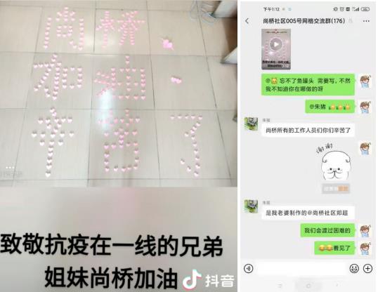 面對新型冠狀病毒的肺炎疫情,社區(qū)充分發(fā)揮引領(lǐng)作用,通過微信群等方式廣泛發(fā)動志愿者帶頭,團結(jié)群眾,積極參與疫情防控工作。在社區(qū)的牽頭下,“小組制”得到了落地。隔離人員的物資需求統(tǒng)一匯報給小組長,再由小組長轉(zhuǎn)發(fā)給社區(qū)工作人員統(tǒng)一代購,幾天下來,他們逐漸熟悉隔離生活、逐漸認(rèn)可社區(qū)人員。居民為感謝社區(qū)志愿者,還自制了一段視頻,將他們認(rèn)真負(fù)責(zé)和悉心服務(wù)的全過程記錄了下了。志愿者與居民相互守望幫扶,成為基層防控服務(wù)的一道“暖心”風(fēng)景線。