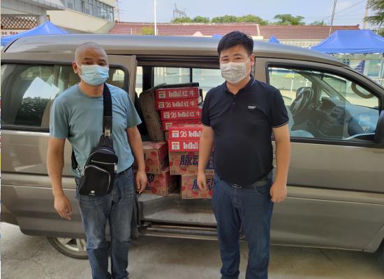 8月1日上午,轄區(qū)內(nèi)的老百姓傅業(yè)劍看到社區(qū)工作人員連續(xù)辛苦奮戰(zhàn),特地自發(fā)購(gòu)買了幾十箱紅牛和脈動(dòng)等愛心物資送到社區(qū)慰問大家,也用自己的行動(dòng)支持著社區(qū)工作。與此同時(shí),今天上午在高塘新寓物業(yè)也來了一位愛心老百姓,自發(fā)為物業(yè)贈(zèng)送了八四消毒液。
