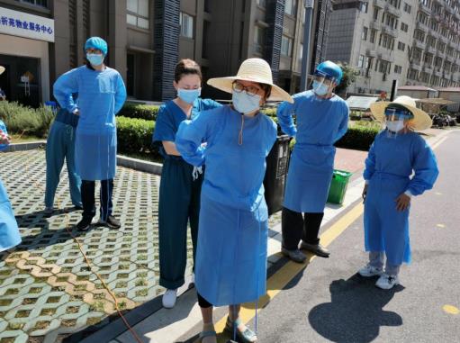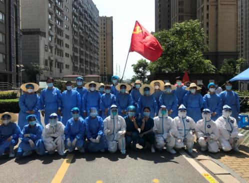 核酸檢測現(xiàn)場的工作人員合影