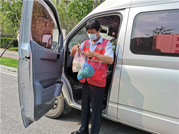 蔬菜、生活用品、快遞是居家隔離人員需求最多的幾項(xiàng)服務(wù),雖然不能邁出家門(mén),但他們通過(guò)一條微信、一個(gè)電話就可以直接“下單”,志愿者就會(huì)把他們需要的東西送到家門(mén)口。為服務(wù)好居家隔離人員的生活,攝山村委會(huì)安排專人通過(guò)“掌上云社區(qū)”微信群溝通和電話聯(lián)絡(luò),及時(shí)掌握隔離人員的身體、生活狀況,了解各類(lèi)需求。根據(jù)隔離人員的需求,村委會(huì)干部安排專車(chē)和志愿者,每天幫忙采購(gòu)蔬菜、水果、雞蛋等生活必需品,到取貨點(diǎn)代取快遞,做好防護(hù)的基礎(chǔ)上,將物資配送到居民門(mén)口,確保隔離人員足不出戶、安心隔離。