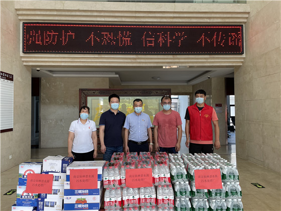 8月5日,棲霞社區(qū)黨員陳來(lái)寶來(lái)到九鄉(xiāng)河小區(qū)與楓翔小區(qū)的防疫檢查站,為疫情防控一線值守人員送上6箱礦泉水、1箱冰棒、4箱牛奶,為疫情防控貢獻(xiàn)力量。他表示:“自疫情發(fā)生以來(lái),社區(qū)黨員干部始終戰(zhàn)斗在抗擊疫情的第一線,為了保障人民群眾的生命健康安全,每日加班加點(diǎn)進(jìn)行疫情防控工作。作為一名共產(chǎn)黨員,我應(yīng)當(dāng)發(fā)揮表率作用,盡自己的綿薄之力,協(xié)助防疫工作人員,黨民同心,共同渡過(guò)疫情難關(guān)。”森林公安李齊天老師也拖著一車物資到卡點(diǎn)捐贈(zèng)。“感謝曹阿姨送來(lái)清涼爽口的糖片、檸檬片”“感謝志愿者送來(lái)的4箱口罩、1箱消毒水”······微信群里紛紛點(diǎn)贊。除此之外,還有很多的愛(ài)心居民、企業(yè)也給社區(qū)送來(lái)了防疫物資,例如仙林碧水源污水處理廠、棲霞古寺、宏鼎裝飾城、棲霞車隊(duì)等。