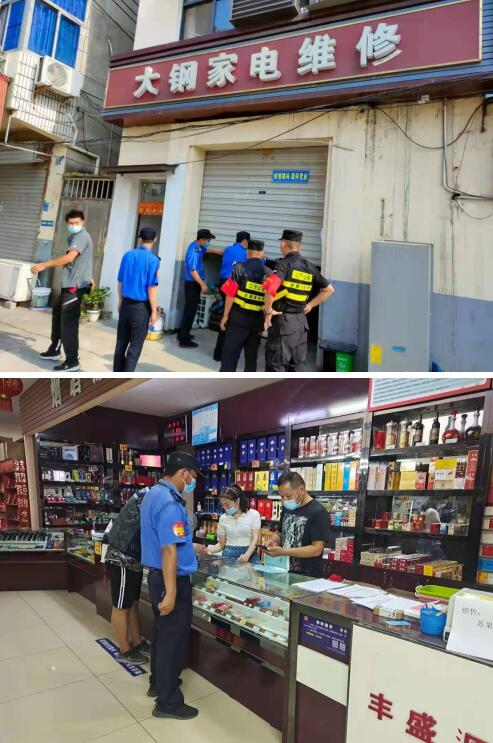 落實(shí)“三個(gè)一”防范措施,一是分片區(qū)對(duì)集鎮(zhèn)區(qū)域內(nèi)的所有非涉及居民生活必需品的店鋪和公共場(chǎng)所“排查一遍”,勸導(dǎo)商戶以疫情防控大局為重,遵照通知要求,在疫情期間,暫停營(yíng)業(yè)。對(duì)拒不配合防疫規(guī)定的,聯(lián)合派出所、社區(qū)等部門進(jìn)行相應(yīng)處罰,最大限度的避免人員扎堆聚集,防止交叉?zhèn)魅荆行ПWo(hù)人民群眾的生命和健康安全;二是每日組織人員對(duì)轄區(qū)內(nèi)超市、藥店、銀行、農(nóng)貿(mào)市場(chǎng)等涉及居民生活必需品的沿街商鋪和公共場(chǎng)所 “巡查一遍”,檢查商戶行程史和核酸檢測(cè)情況等,對(duì)存在行程史異常、核酸檢測(cè)次數(shù)不足等情況的,第一時(shí)間進(jìn)行上報(bào),及時(shí)消除安全隱患;三是每日組織人員對(duì)沿街商戶佩戴口罩、測(cè)量體溫、消毒消殺、保持通風(fēng)等情況“落實(shí)一遍”,要求沿街商戶保持經(jīng)營(yíng)場(chǎng)所環(huán)境衛(wèi)生,做好自我防護(hù),提高安全意識(shí)。
