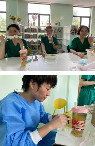 炎炎夏日,甜甜蜜蜜的甜點(diǎn)和冰冰涼涼的飲品為疫情防控一線醫(yī)護(hù)人員送來一份清涼,也體現(xiàn)了對于疫情防控工作的關(guān)心與理解。“看著他們因穿防護(hù)服汗?jié)竦哪橗?,吃飯胃口也不怎么好。我們除了默默為他們加油,更想提供些力所能及的保障為他們解解暑、暖暖心。一杯冰奶茶,一塊小甜點(diǎn),希望他們在這特殊的時(shí)期也能好好地緩解下疲勞。”許高村黨委書記劉軍說。