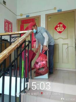 為居家隔離人員送去當(dāng)?shù)爻?、菜?chǎng)購(gòu)買的蔬菜、物資,以開(kāi)車、步行的方式送到居民手中。細(xì)致的服務(wù),讓居民們對(duì)她贊不絕口。