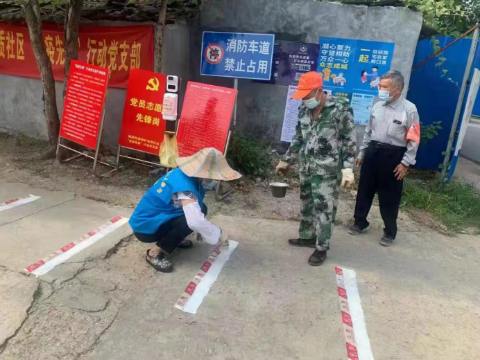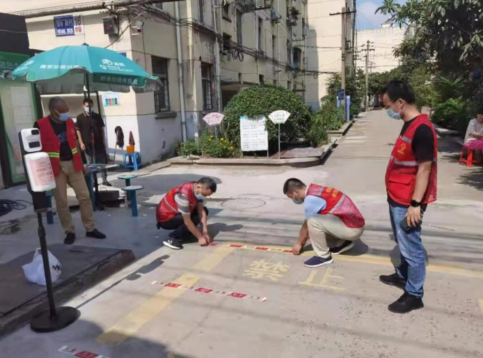 為了切實做好疫情防控工作,引導(dǎo)居民保持一米社交距離,近日,南京市棲霞區(qū)棲霞街道銀礦地質(zhì)社區(qū)城市治理志愿者在轄區(qū)小區(qū)入口處劃設(shè)一米警戒線。