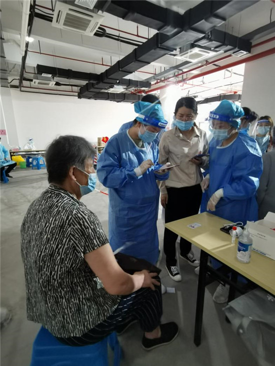 精確分工、合理安排好一切重要、緊急的工作,梁晴書記依舊憂心忡忡,除了社區(qū)黨群服務中心,她匆忙的身影還在社區(qū)的出入關卡、一輪輪的核酸檢測采樣點忽隱忽現(xiàn)。從核酸檢測采樣點的布置到檢測現(xiàn)場維持秩序,甚至是志愿者和醫(yī)務人員的飯餐都親力親為。檢測時,天氣炎熱,大汗淋漓,梁晴書記也從不缺位,檢測的每一個環(huán)節(jié)都參與其中。后期醫(yī)生上門為居家隔離人員上門做核酸,梁晴書記還擔當起醫(yī)生們的專職司機,車接車送,風雨無阻。