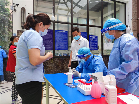 “你先回家休息,現(xiàn)場還有大家呢……”翟書記耐心開導(dǎo)現(xiàn)場疲憊感明顯的工作人員。在現(xiàn)場工作中,他提醒工作人員注意個人防護,及時休息,有“硬骨頭”就丟給他。他是社區(qū)書記,更像一個大家長,時時刻刻庇護著社區(qū)的所有人。