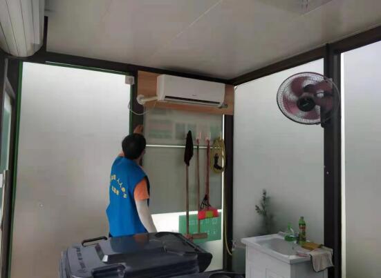 面對(duì)炎熱的天氣以及高強(qiáng)度的工作,對(duì)于守在半敞半開式的環(huán)保屋內(nèi)的垃圾分類工作人員來說,著實(shí)是個(gè)不小的考驗(yàn)。為了助力垃圾分類工作,讓垃圾分類工作人員能有一個(gè)更加舒適清涼的環(huán)境,南京市棲霞區(qū)棲霞街道銀礦地質(zhì)社區(qū)為轄區(qū)內(nèi)的各垃圾分類點(diǎn)環(huán)保屋安裝空調(diào)。