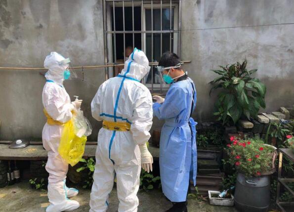 由于疫情防控工作的需要,居家隔離人員不能自主外出,面對一輪又一輪的核酸檢測工作,2號網(wǎng)格員王鳴帶領(lǐng)醫(yī)護(hù)人員前往他們家中,為他們將核酸檢測“送”上門。因?yàn)樘鞖庋谉?,王鳴又穿著隔離服,一整天工作下來,衣服都被汗水浸濕。同時,居家隔離人員人數(shù)多,地點(diǎn)不集中,王鳴每天都要上門走訪多戶,但他從來不喊苦不喊累,一直堅(jiān)守在自己的崗位上。