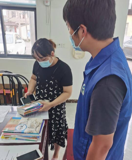 然后,隨著暑期進(jìn)入尾聲,疫情得到控制,學(xué)校也將如期開學(xué)。錢家村內(nèi)有7名學(xué)子尚處于居家健康監(jiān)測的階段,不方便返校領(lǐng)取課本。為此,網(wǎng)格員主動(dòng)提出幫助學(xué)子們前去學(xué)校領(lǐng)取開學(xué)書籍。在學(xué)校內(nèi),網(wǎng)格員根據(jù)學(xué)子的年級,找到相應(yīng)的負(fù)責(zé)老師一一將他們本學(xué)期所需書籍領(lǐng)取到位。語文、數(shù)學(xué)、英語......一本本課本是學(xué)子們未來一學(xué)年披荊斬棘,駛向遠(yuǎn)方的動(dòng)力。隨著課本領(lǐng)取完畢,網(wǎng)格員們又分頭行動(dòng),將書本送至學(xué)子們的家中。