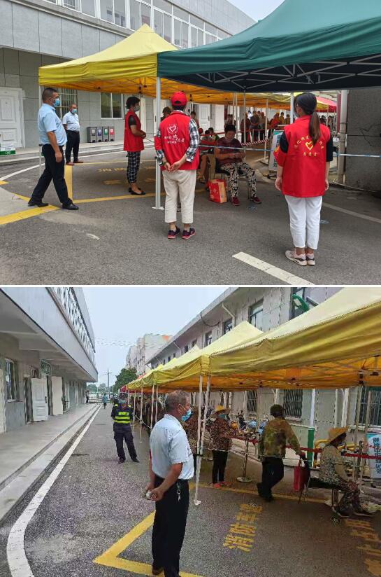 該村工作人員嚴(yán)格按照相關(guān)工作部署,及時(shí)落實(shí)工作安排,制定明確方案,合理分工。在土橋醫(yī)院接種點(diǎn),從等候區(qū)到排隊(duì)區(qū),均設(shè)置了一米安全間隔線,避免人群聚集風(fēng)險(xiǎn)。排隊(duì)處、登記處、接種處、觀察區(qū)……各個(gè)點(diǎn)都有該村工作人員的身影,他們一直堅(jiān)守在自己的崗位上,幫助醫(yī)護(hù)人員進(jìn)行疫苗接種相關(guān)信息登記、為村民們發(fā)放疫苗接種憑證并維持現(xiàn)場(chǎng)的排隊(duì)秩序。盡管外面天氣炎熱,他們卻沒有喊苦喊累,時(shí)刻做好人民群眾安全保障工作。