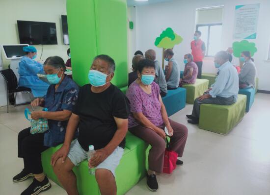 疫苗接種現(xiàn)場,在村志愿者的帶領(lǐng)下,老人們有序排隊拿著身份證在登記處進行登記,領(lǐng)取疫苗接種的單頁,做好疫苗接種和留候觀察的流程。