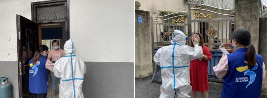 為了減少核酸檢測的排隊時間和成本,網(wǎng)格員和醫(yī)務人員一同上門幫居家檢測人員檢測核酸,讓群眾少跑腿。