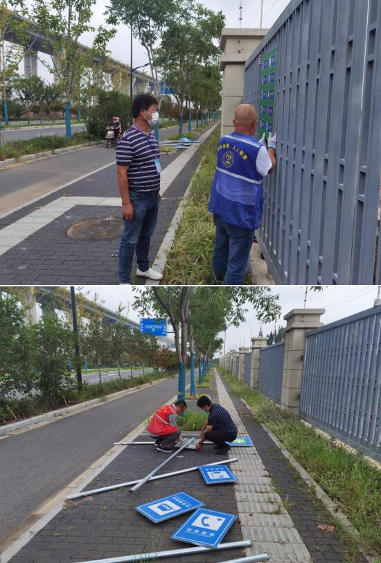 指示牌上具有應(yīng)急避難場(chǎng)所、應(yīng)急物資供應(yīng)、應(yīng)急滅火器等各類(lèi)標(biāo)識(shí),有助于居民們?cè)诎l(fā)生危險(xiǎn)時(shí)及時(shí)辨別相關(guān)應(yīng)急措施,從而最大程度保護(hù)自身的安全。該社區(qū)城市治理委員會(huì)公眾委員幫助志愿者將指示牌按照要求組裝好,并選定在合適的位置進(jìn)行懸掛,提高行人防災(zāi)減災(zāi)的意識(shí),讓?xiě)?yīng)急知識(shí)更加深入人心。