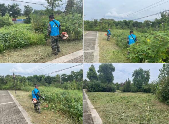 在活動(dòng)中,志愿者們手拿除草機(jī)對社區(qū)和園廣場綠地生長旺盛的雜草進(jìn)行了清理。大家不顧天氣的炎熱,分工合作,熱情高漲,揮汗除草,任勞任怨,發(fā)揚(yáng)不怕臟、不怕累的精神,為園區(qū)的衛(wèi)生環(huán)境揮灑辛勤的汗水;對難以除掉的雜草,就用手連根拔起,經(jīng)過一天的努力,廣場內(nèi)的雜草基本清除干凈,社區(qū)的面貌也煥然一新,環(huán)境得到了很大的改善。