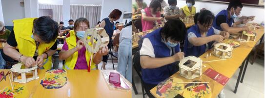 接著開展了“中秋佳節(jié)傳統(tǒng)手工樂”非遺花燈手工制作體驗(yàn),主持人先為社區(qū)居民講述了中國非物質(zhì)文化遺產(chǎn)——花燈的歷史文化。隨著社區(qū)居民的求知欲和好奇心的不斷提升,非遺花燈制作正式開始,在社區(qū)公會(huì)志愿者、時(shí)間銀行志愿者一步步指導(dǎo)下,大家互相幫助通力合作,一敲一按一貼,不一會(huì)兒精美的花燈就制作完成了,大家迫不及待地點(diǎn)亮花燈和自己的作品合影留念。
