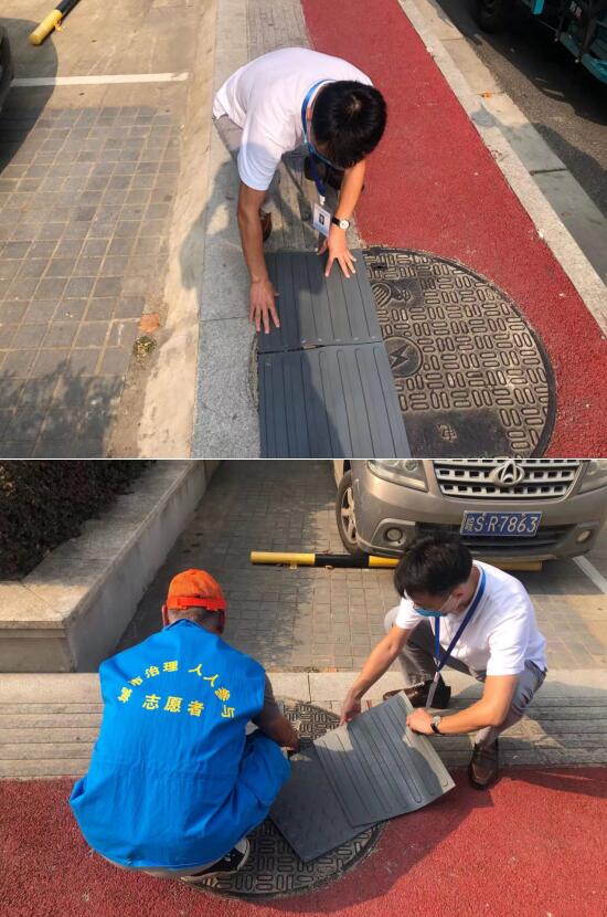 志愿者早早地就帶上了盲道貼紙,來到了堯和西路盲道旁,公眾委員也積極參與進來,因電阱蓋被阻斷的盲道粘貼了盲道貼,缺少的阻斷的盲道也完成了修復,雖然修復工作十分的麻煩,但志愿者們和公眾委員們也不必辛苦,辛勤服務,努力保障盲人的安全出行。希望能夠修復更多的不規(guī)范盲道。