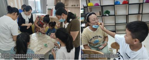 在手工月餅環(huán)節(jié)中,志愿者拿出準(zhǔn)備好的材料和道具,向大家講解了做月餅的流程,引導(dǎo)在場(chǎng)的家長(zhǎng)和孩子們圍繞在桌子前,分工開(kāi)始制作手工月餅。家長(zhǎng)們和面、捏出餅皮,孩子們?cè)诶锩姘献约合矚g的餡料,父母子女齊上陣,用模具按壓出月餅的形狀,將香噴噴的月餅烤制出爐,共同分享了這份親情的甜蜜。